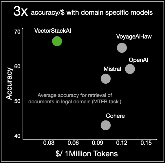 From embedding models to vector databases, and more, we’re laying the foundation for a vertically integrated GenAI stack; delivering better quality at a fraction of the cost.